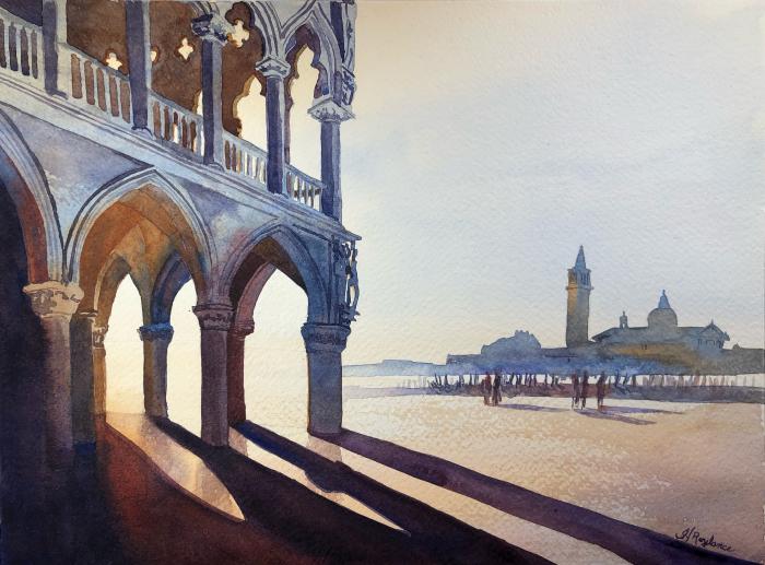 Helene Roylance Sunrise Through Palazzo Ducale 10 x 14 inches $500 |