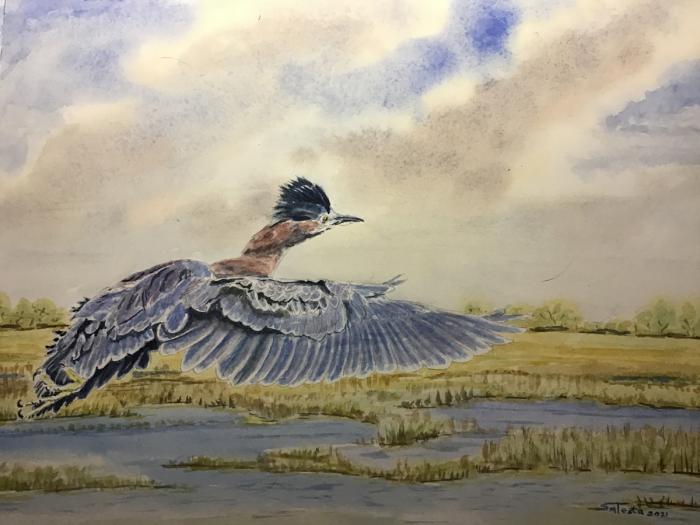 Stephen Testa Green Heron Over The Delta 12 x 16 inches $450 |