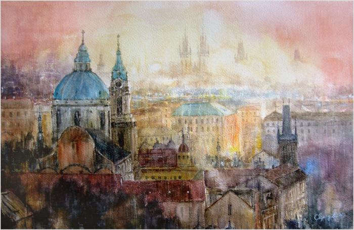 Ching-Ping Sun Fiery Sunset in Prague 15 x 22 inches $1500 |